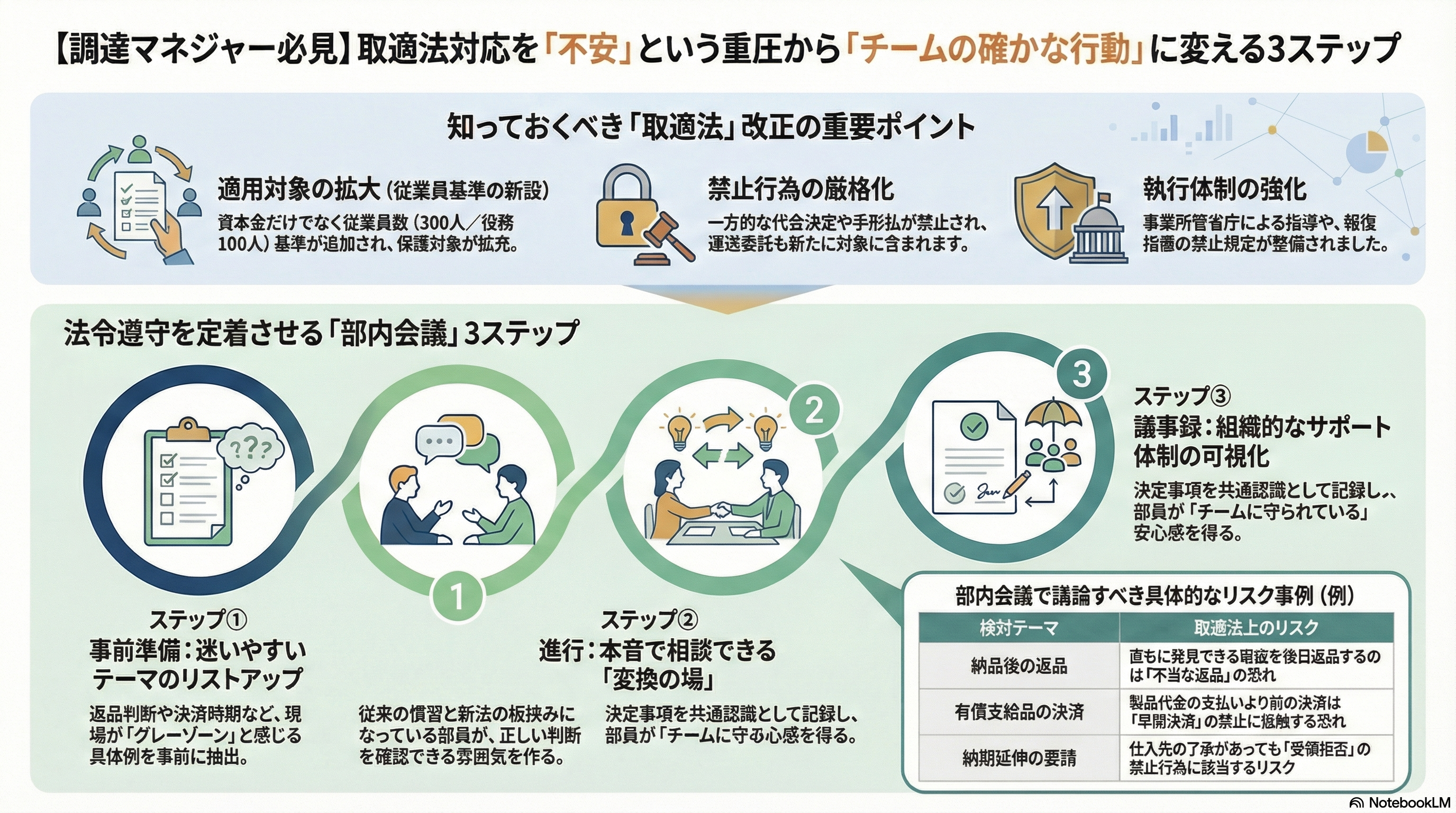 【調達部内会議】部内会議で解決できること(取適法対策編)〜「法令遵守の不安」を調達チームの確かな行動に変える3つのステップ〜