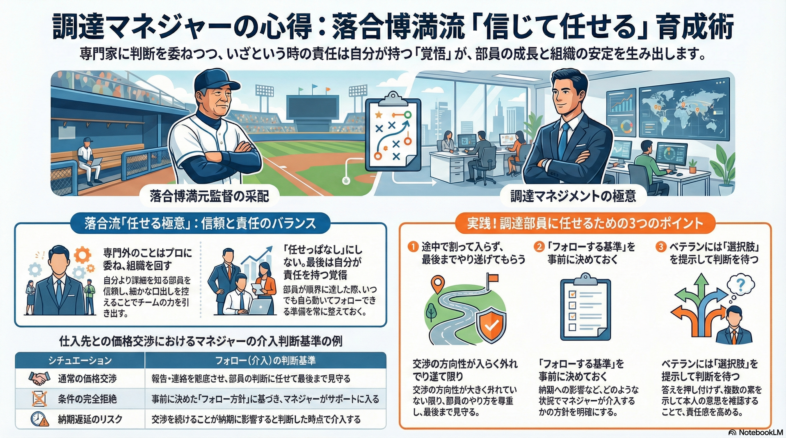 【調達マネジャーの心得】中日ドラゴンズ落合博満元監督に学ぶ!調達部員を信じて任せ、最高のタイミングで手を差し伸べる育成のコツ